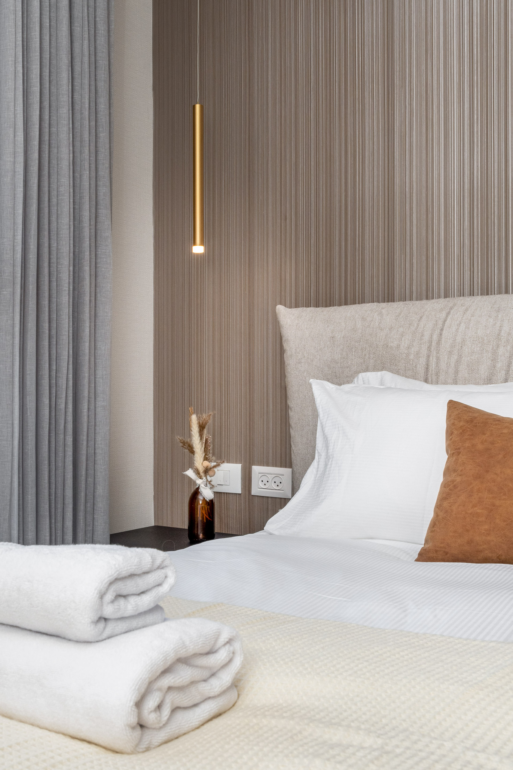 Soigneusement conçu avec un goût raffiné et un souci du détail, l'appartement présente des tons naturels doux, des finitions haut de gamme et une atmosphère à la fois chaleureuse et sophistiquée. Il peut accueillir confortablement jusqu'à quatre invités, ce qui le rend idéal pour les couples, les familles ou les voyageurs d'affaires.