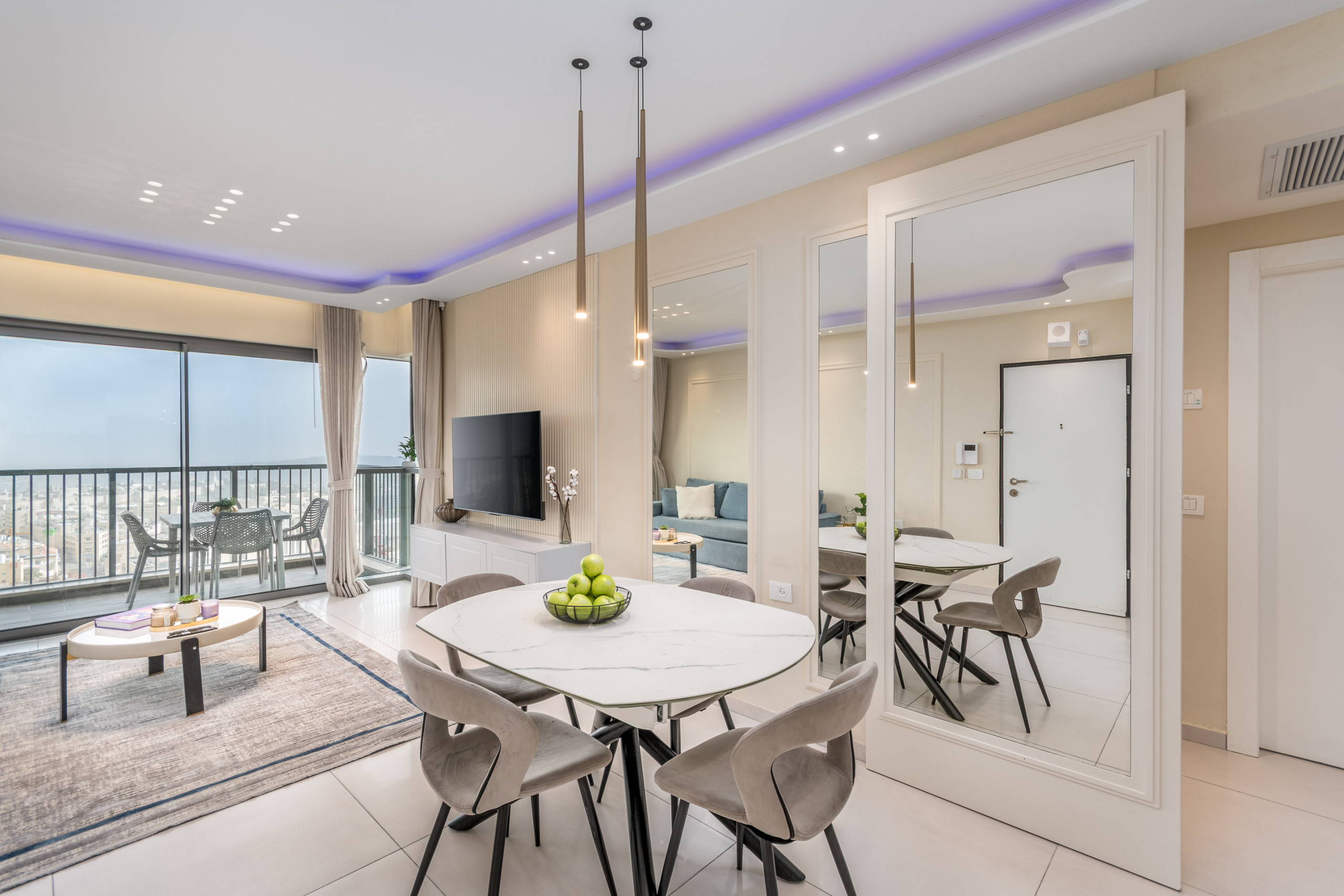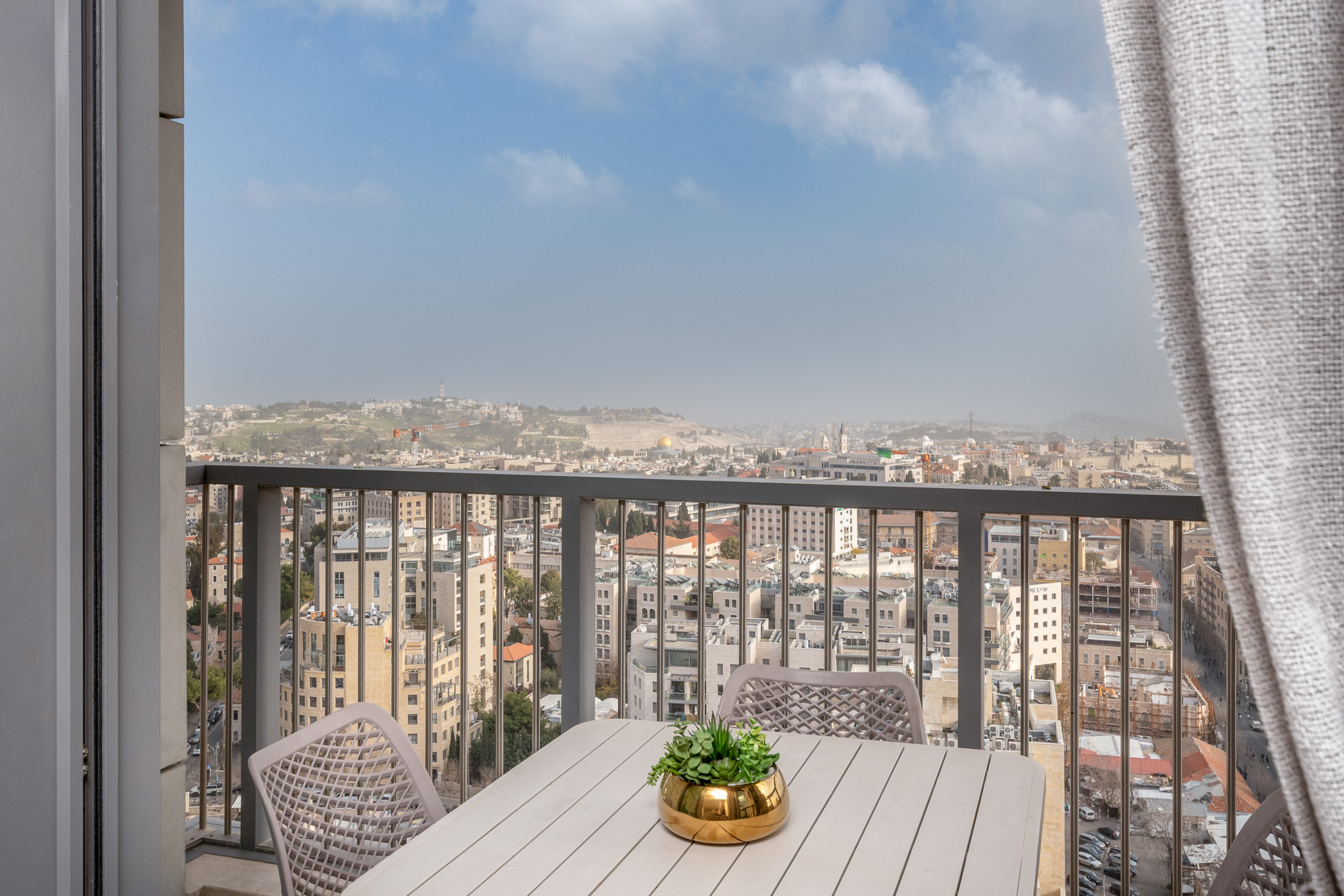 From the living room and private balcony, guests can enjoy breathtaking panoramic views of Jerusalem’s Old City, including the Temple Mount (Har Habayit). Whether you're enjoying a quiet breakfast or relaxing after a long day, the scenery offers a truly unforgettable experience.
