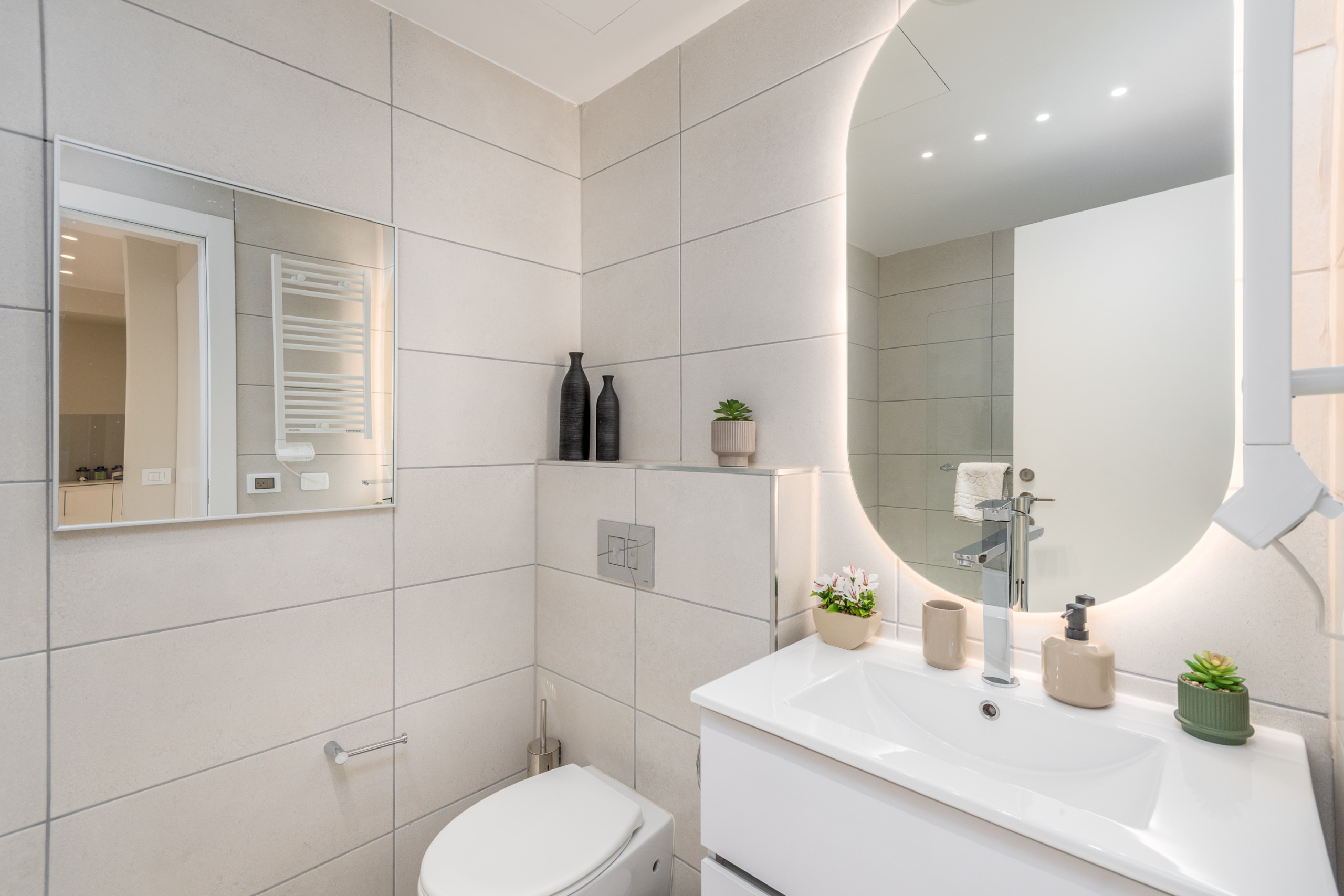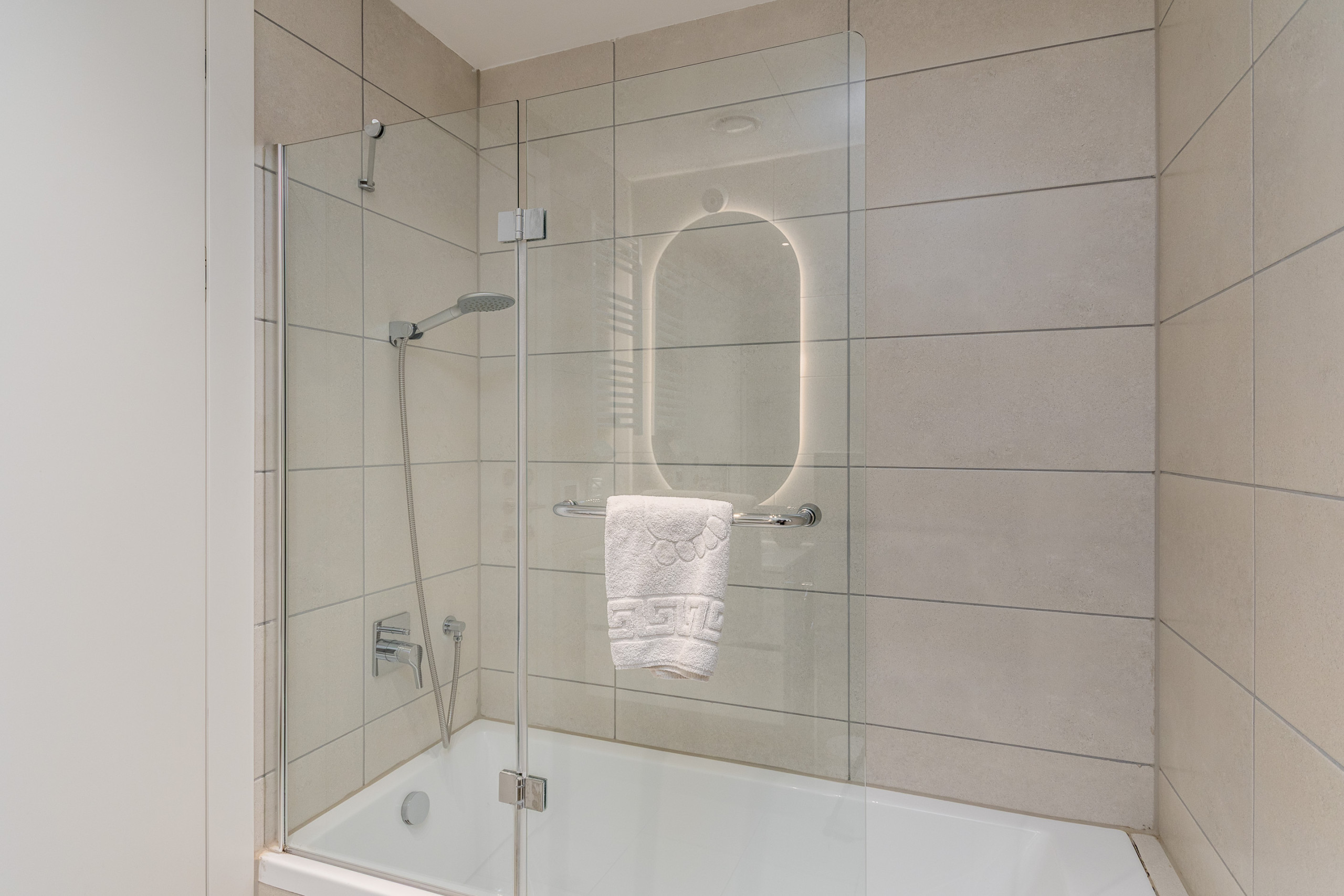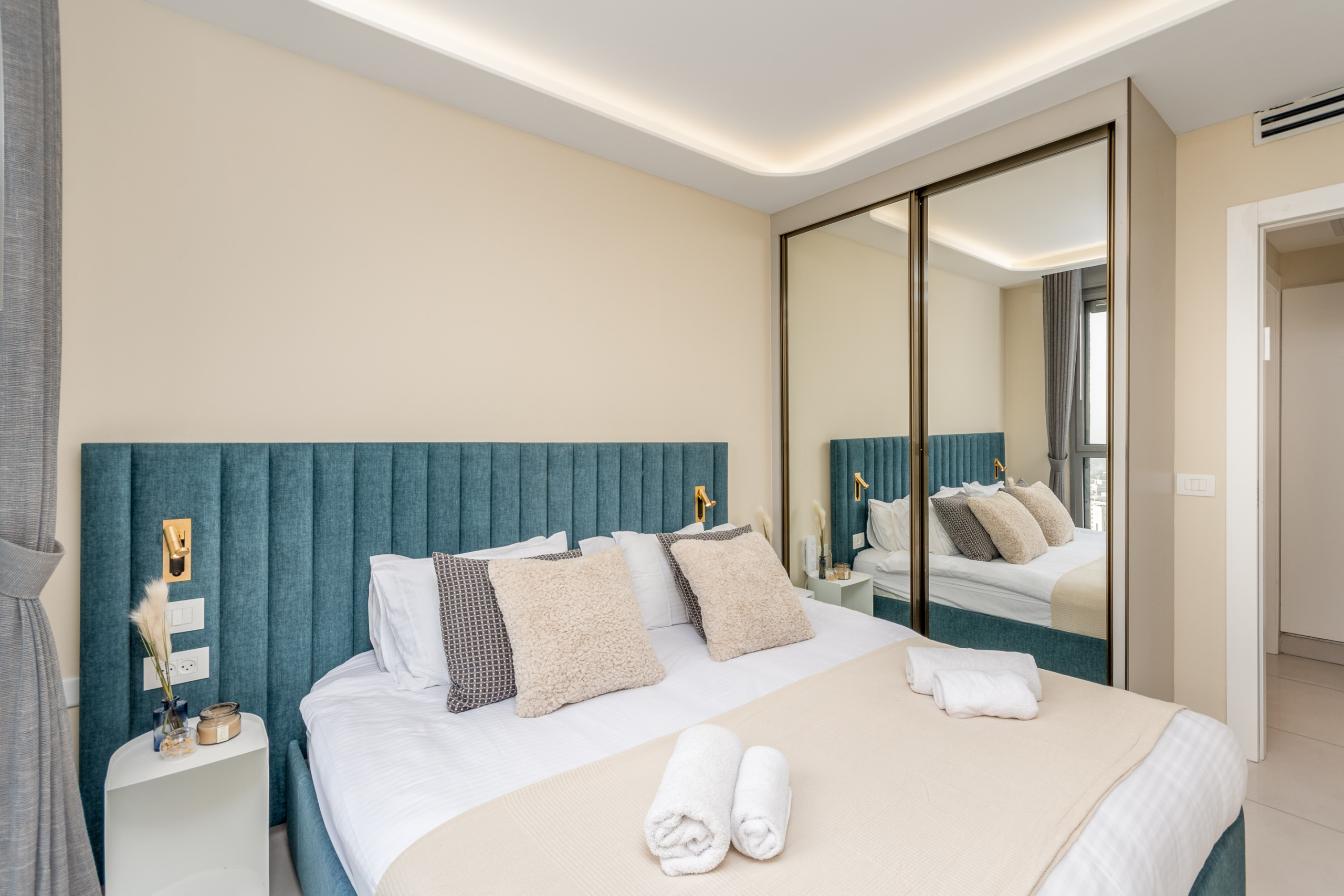 Carefully designed with refined taste and attention to detail, the apartment features soft natural tones, premium finishes, and a cozy yet sophisticated atmosphere. It can comfortably accommodate up to four guests, making it ideal for couples, families, or business travelers.