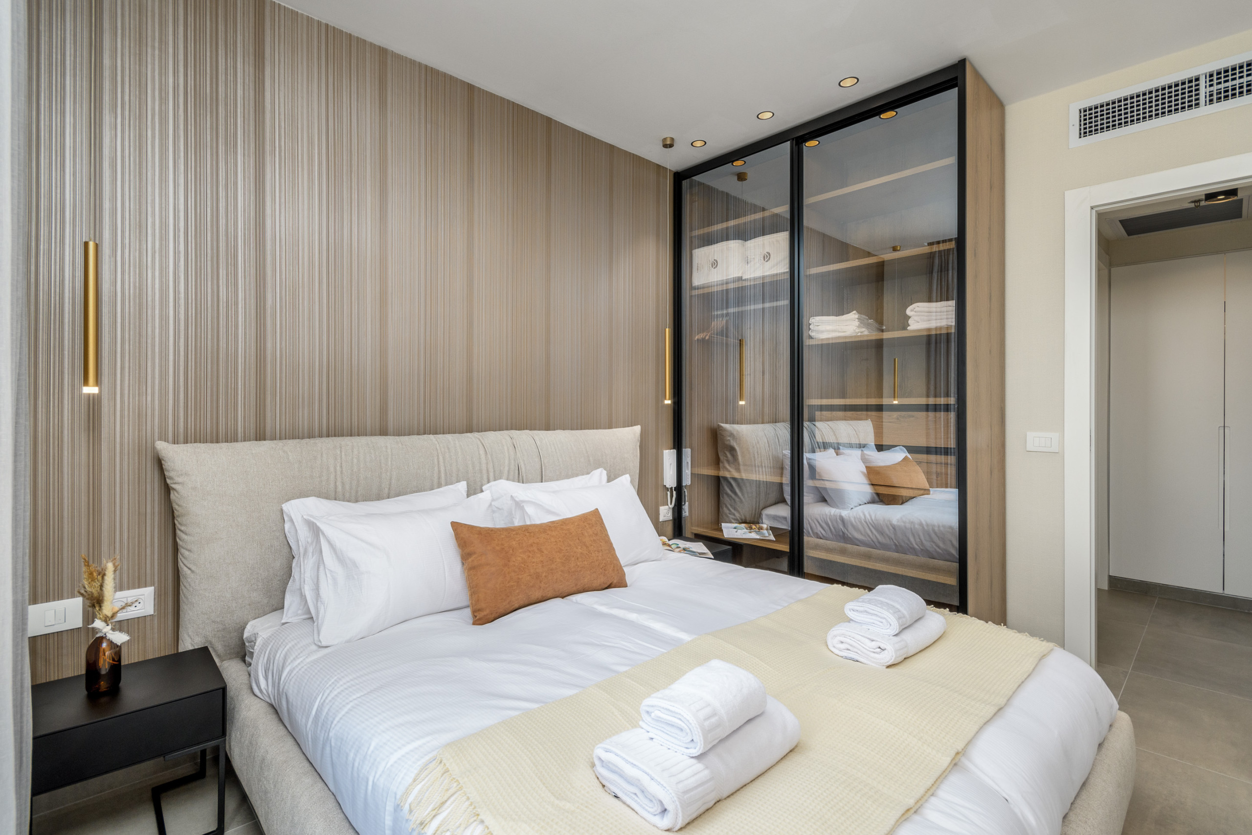 Carefully designed with refined taste and attention to detail, the apartment features soft natural tones, premium finishes, and a cozy yet sophisticated atmosphere. It can comfortably accommodate up to four guests, making it ideal for couples, families, or business travelers.