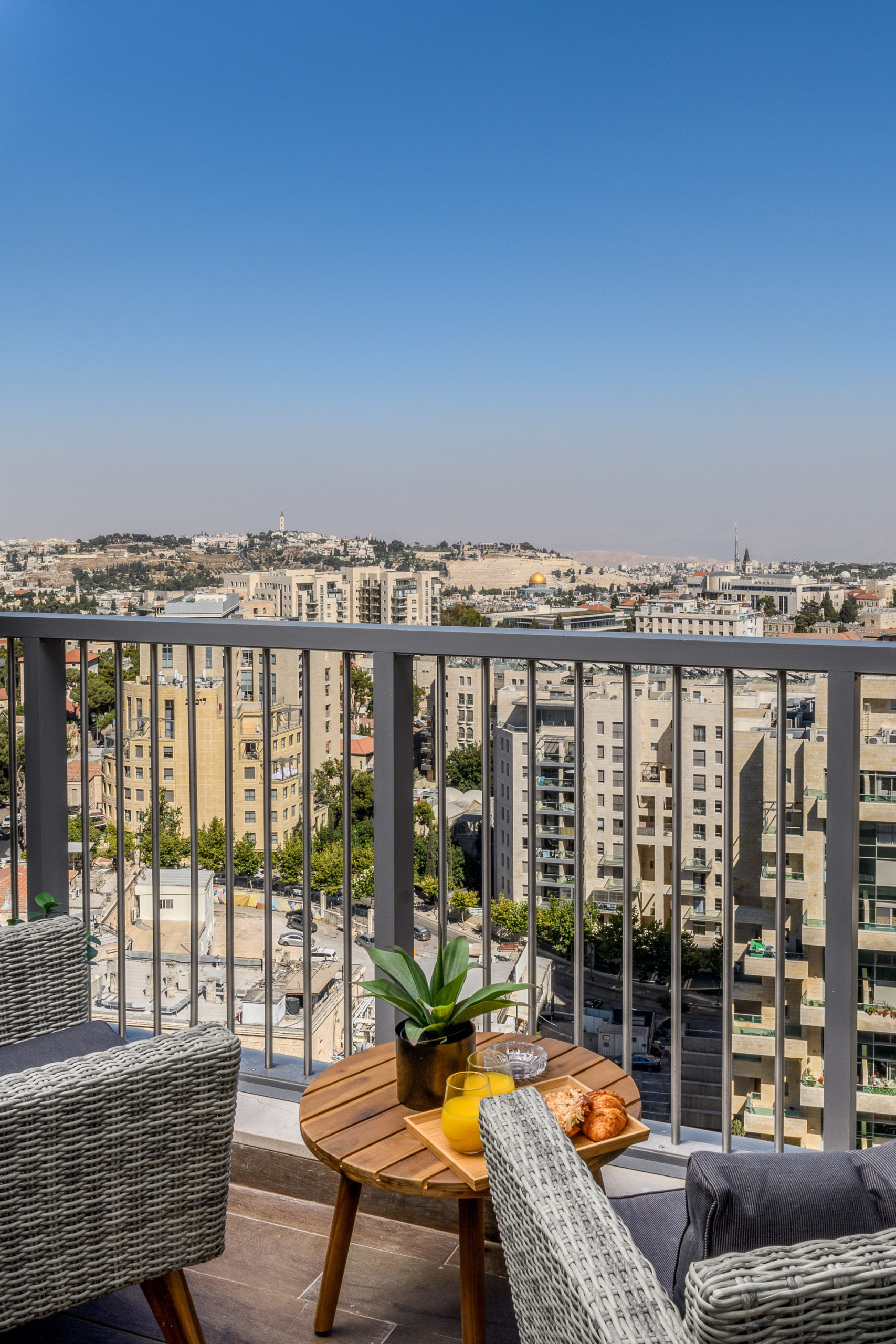 From the living room and private balcony, guests can enjoy breathtaking panoramic views of Jerusalem’s Old City, including the Temple Mount (Har Habayit). Whether you're enjoying a quiet breakfast or relaxing after a long day, the scenery offers a truly unforgettable experience.